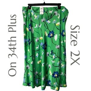 ON 34TH Plus - Lightweight Vibrant Green Floral Skirt - Size 2X