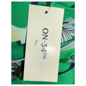 Add a burst of botanical charm to your wardrobe with this ON 34TH Plus green floral skirt in size 2X. Featuring a lively mix of blue, white, and yellow blooms against a rich green backdrop, this skirt is perfect for spring and summer styling. Made from 97% recycled polyester and 3% spandex, it offers a soft, flowy fit with just the right amount of stretch. Originally priced at $49.50, this piece blends comfort, sustainability, and standout style.