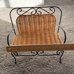 Vintage Miniature Wrought Iron and Wicker Loveseat Bench Doll Furniture Decor