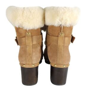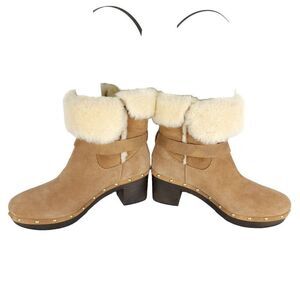 UGG Women's Brea US 9 Suede Chestnut Studded Fur Shearling Clog Boots