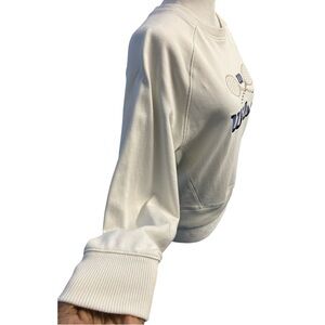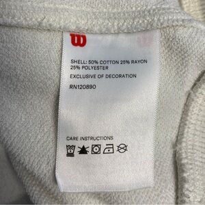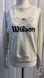 Elegant cream sweater with bold blue Wilson logo. Features a classic crew neck design. Ideal for casual wear.