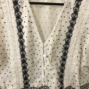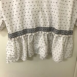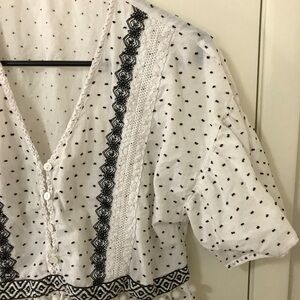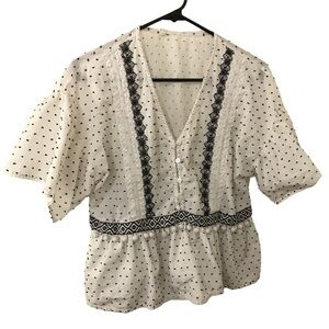 3/$15 Ellison white and black textured dot short sleeve peplum crop top size L