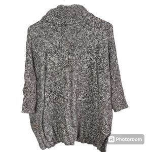 Introducing the Women Matilda Jane Wonderment Evening Stroll Sweater, a cozy and stylish addition to your wardrobe. This top features a turtleneck neckline and short knit sleeves, with a relaxed fit and split sides for comfort and versatility. The sweater is made from a soft and warm blend of cotton, acrylic, polyester, and nylon, with a stylish charcoal and gray color pattern This top is easy to care for, simply hand wash only, and is ideal for casual occasions. The sweater is a pull-over style with no closures and has the added feature of being extremely soft to the touch. Pit to pit- 28.5" Length- 23"