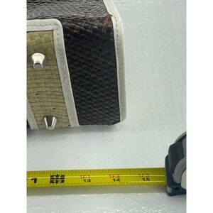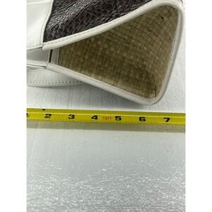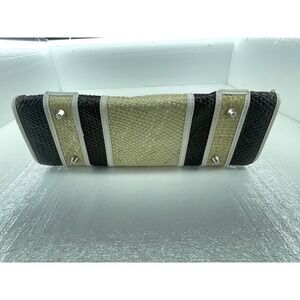 Woven Straw Satchel Bag Top Handle Purse Neutral Colorblock Small
