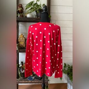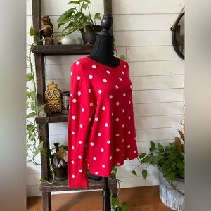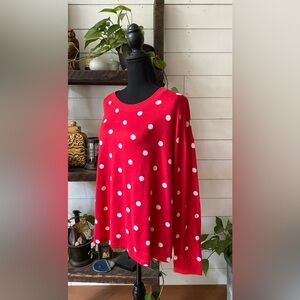 Joyspun Soft Stylish Red and White Polka Dot Crew Neck Sweater