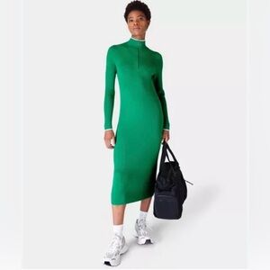 NWT Sweaty Betty Size 6 Frame Knitted Midi Dress Vivid Green