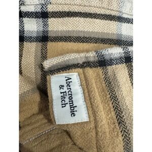 Keywords: Abercrombie Kids, plaid shirt, flannel shirt, button up shirt, boys shirt, girls shirt, tan shirt, black shirt, kids clothing, casual shirt, long sleeve shirt, school shirt, layered shirt, size 13/14