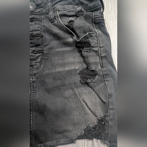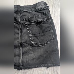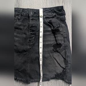 American Eagle Hi-Rise Black Distressed Denim Mini Skirt Size 6 Goth Alternative
