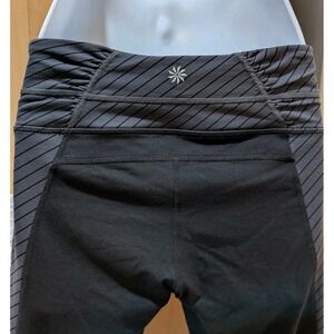 Athleta Leggings Women's Small Black Zippy Balance Striped Crop Capris . Condition is Pre-owned - Excellent. Shipped with USPS Ground Advantage.