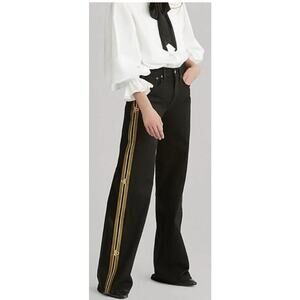 Polo Ralph Lauren Admiral Striped Wide-Leg Jeans Size 29 Black Gold