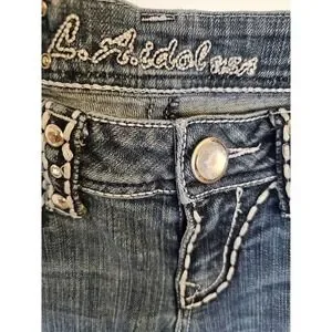 LA Idol Jeans Womans 3 blue bootcut embroidered pockets bling
