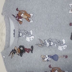 Vibrant sweatshirt featuring iconic Warner Bros. characters. Soft gray fabric with playful multicolor design.