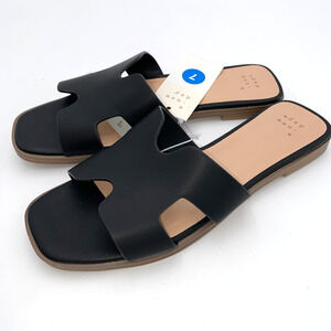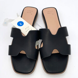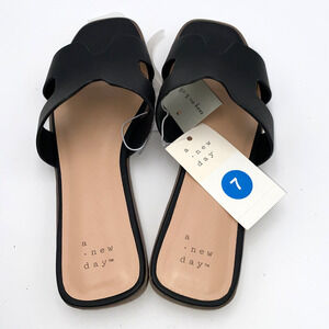 A New Day Shoes Womens Size 7 Black Faux Leather Slip On Flats