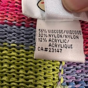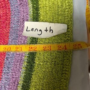 Vibrant striped knit cardigan by Talbots, a delightful addition to any wardrobe. This colorful sweater features a lively mix of pinks, greens, blues, and purples arranged in horizontal stripes, offering a playful yet sophisticated look. The lightweight knit and V-neck design make it perfect for layering or wearing on its own during warmer months. Finished with button-front closure, it brings a touch of whimsy to any outfit. Ideal for casual brunches, garden parties, or adding a pop of color to everyday outfits.