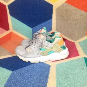 Nike Air Huarache Run Boys Size 6Y Gray Green Athletic Running Shoes Sneakers