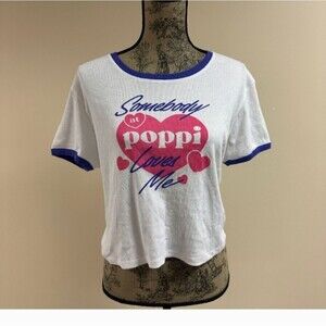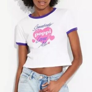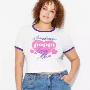 Poppi Soda White Purple crop top T-Shirt Womens L NWT Target Collab Graphic