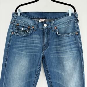 True Religion Jeans Men 34x33 Boot Cut Y2K Embroidered Stitch Flap Pocket USA Ma