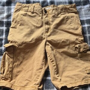 Casual brown cargo shorts with multiple pockets. Ideal for everyday wear.