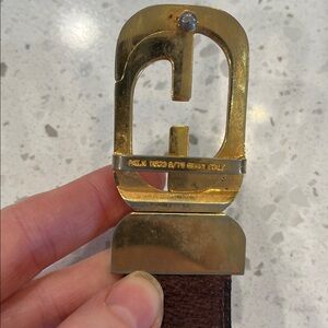 Elevate your style with this vintage Gucci belt featuring a striking gold buckle and a classic brown pattern. Perfect for adding a touch of luxury to any outfit. Fading on the inside of belt . Wear on the holes . See pics