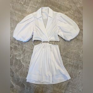 Keywords: Jonathan Simkhai dress, Aulora mini dress, white mini dress, cut-out dress, puff sleeve dress, cotton poplin dress, structured mini dress, summer dress, spring dress, bridal shower dress, graduation dress, engagement dress, vacation outfit, modern feminine, designer dress, size medium.