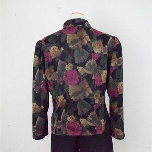 Vintage Dark Floral Sheer Polyester Blouse | 80s jacket