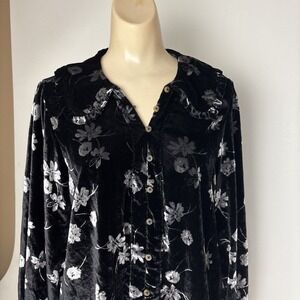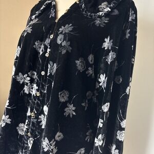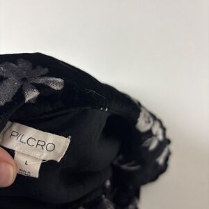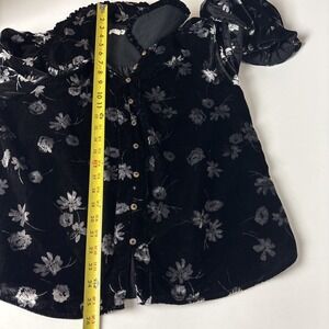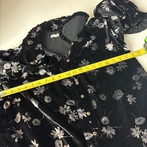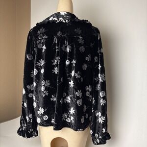 Pilcro Womens L Keira Ruffle Collar Button Front Blouse Black Velvet Floral Boho