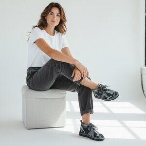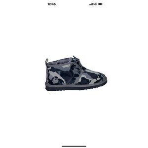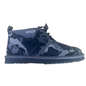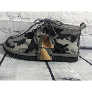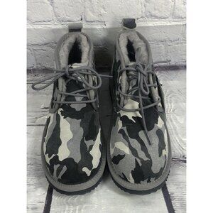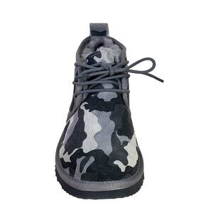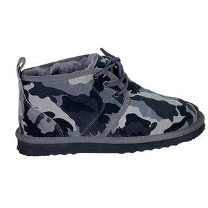 really nice and super comfortable faux fur lined lace up camo suede leather waterproof, sz 6 mens/ womens 8, length from heels to toe 11, widest width 4.5
