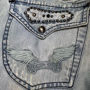 Robin’s Jean Men’s Distressed Studded Denim Jeans Size 36 Light Wash Y2K