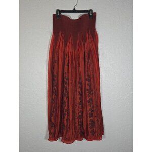Lapis Shimmer Smocked Embroidered Maxi Skirt One Size Red Whimsy Boho Gypsy