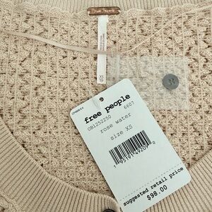 NWT Free People Rose Water Cropped Cardigan. Stretchy material. Beige/blush color. Comes with extra button. Women’s size XS.