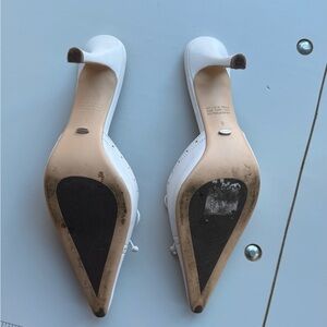 Chic cream heels with elegant bow detail. Perfect for stylish outings.