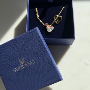 Swarovski Disney Necklace Minnie Mouse Crystal GoldPink Ribbon NWT /NIB