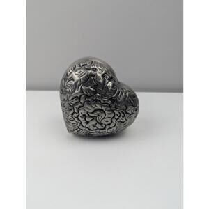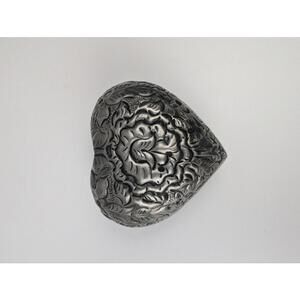 April Cornell Silver Heart Shaped Decorative Box with Floral Embossing