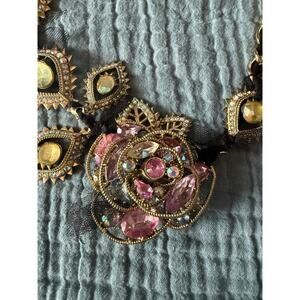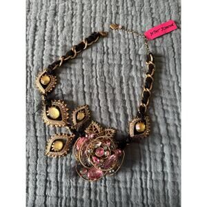 NWT Betsey Johnson Ribbon XO Crystal Flower & Evil Eye Necklace