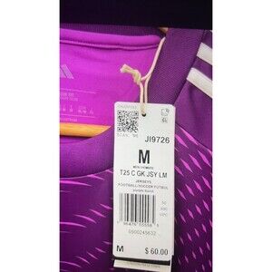 The Adidas T25 Goalkeeper Jersey in Purple Burst is a modern and stylish soccer jersey made of polyester material. It is designed in a bold purple color with a burst pattern, making it stand out on the field. The jersey is comfortable and durable, perfect for the active goalkeeper. Made by Adidas, a trusted brand known for quality athletic clothing, this jersey is sure to enhance any player's performance during games.