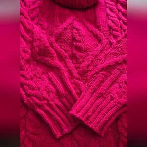 Aran Crafts Women's Rich Red Cable Knit Turtleneck Sweater SZ.S