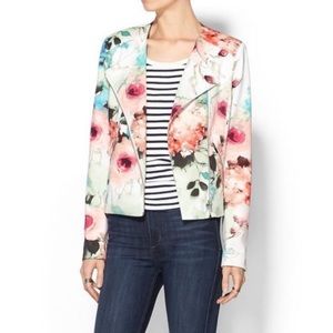 Piperlime Collection watercolor floral print moto jacket. Two front zipper pockets. Fully lined. collarless jacket. Excellent preowned condition, like new.