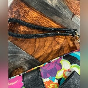 Betsey Johnson Colorful Floral Wristlet with Black Bow