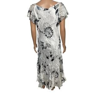 Komarov Floral Crinkle Midi Dress Large lace detail V-neck White/Black/Brown New with tags