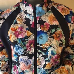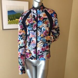 Created with athletic adventure in mind, the Fall Dance Fitted Athletic Jacket is the perfect layering choice for a crisp morning run. Crafted from a beautifully printed machine washable fabric, this jacket is easily cleaned and ready for the next days' adventure. Pair with active leggings and a coordinating sports bra for a complete workout look.