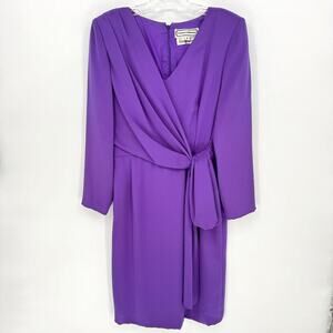 Carolina Herrera Neiman Marcus Silk Purple V Neck Draped Knot Midi Dress Size 8