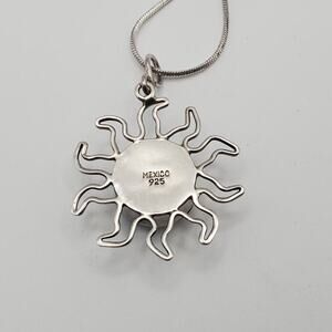 Sterling Silver Larimar Sun Moon Pendant 23" Snake Chain Necklace Made in Mexico