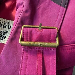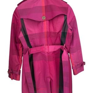 Burberry Brit Women's Pink and Purple Plaid Trench Coat, Size L