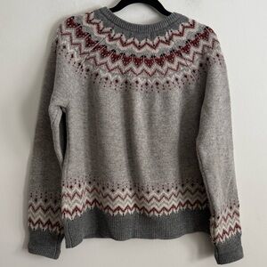WoolOvers 100% Lambswool Fair Isle Cardigan Grey Burgundy Size M