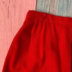 Vintage red wool midi pencil skirt. Tagged us a size 14 fits more like a small. No stretch. Silk lining. No flaws.