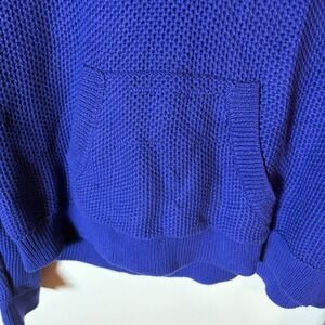 Lauren Ralph Lauren Blue Cotton Knit Hooded V-Neck Pullover Size Large