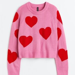 H&M Pink Sweater with Red Hearts