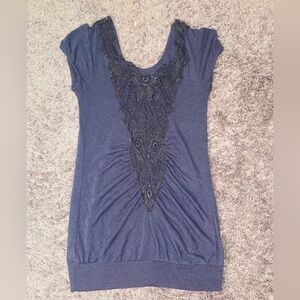 Teenbell Women’s Lace Back Tunic Top Size Medium Purple Scoop Neck Short Sleeve