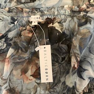 Baltic Born Elegant floral dress in a beautiful blue hue. Perfect for any occasion. Can be worn off the shoulder. This dress is really pretty I bought for a wedding and went with another dress NWT size large. I’m 5’7” dress comes to the ankle. Dress is lined in light blue