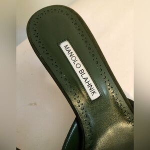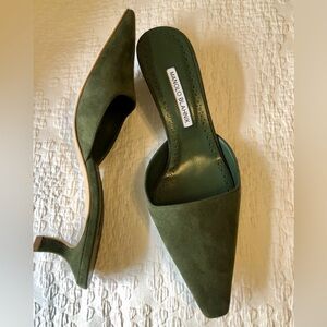 MANOLO BLAHNIK Moiramu 50 Suede Mules Shoes Army Green US 8 - EU 38 NEW